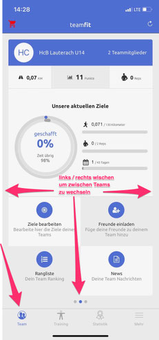 TeamFit ist eine gratis App die es unseren Teams erlaubt ein individuelles Ausdauertraining zu machen und die Trainingseinheiten zu dokumentieren.