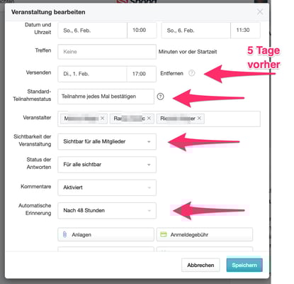 - Die Veranstaltungen werden mit Standard-Teilnahmestatus "Automatische Teilnahme" eingetragen.